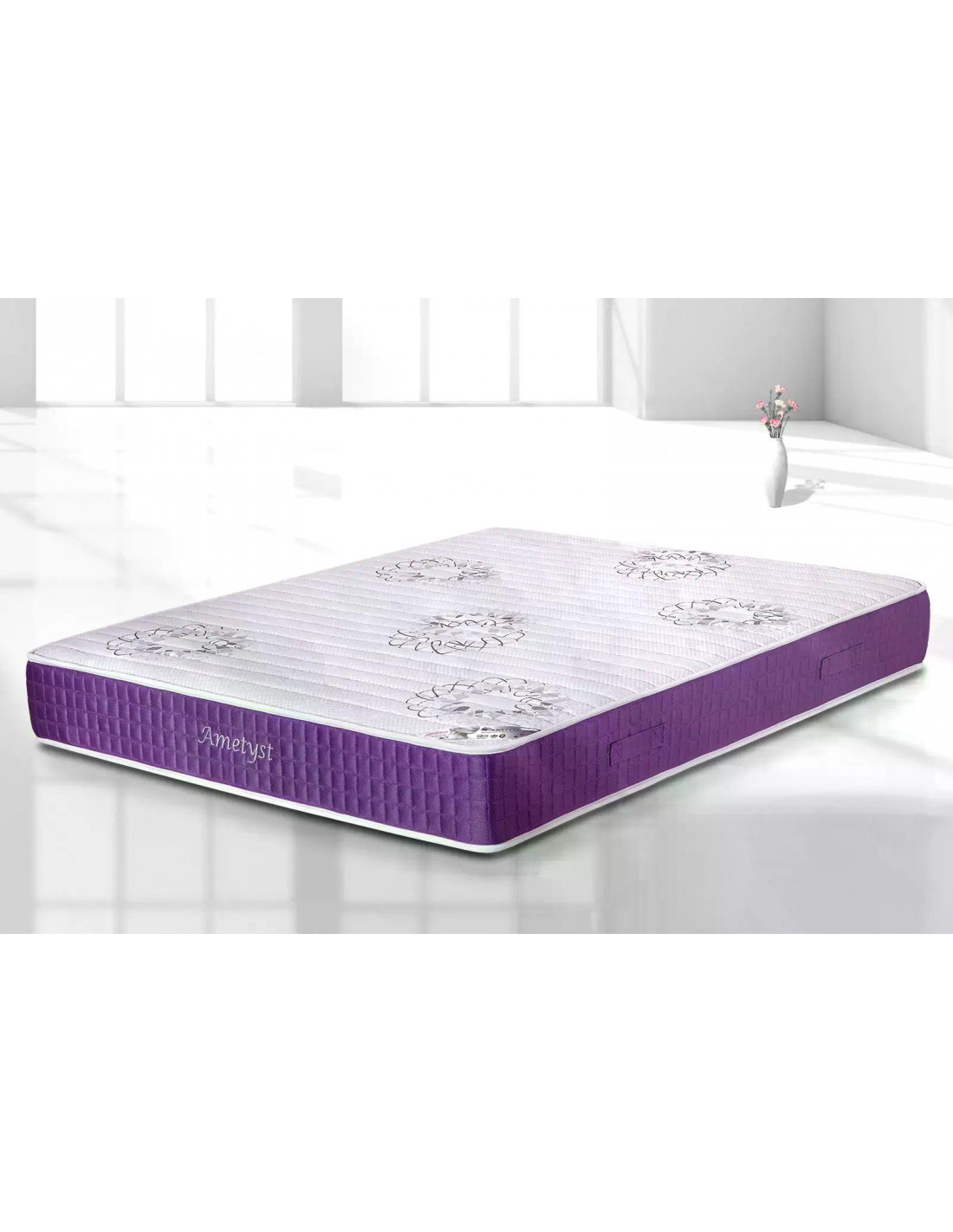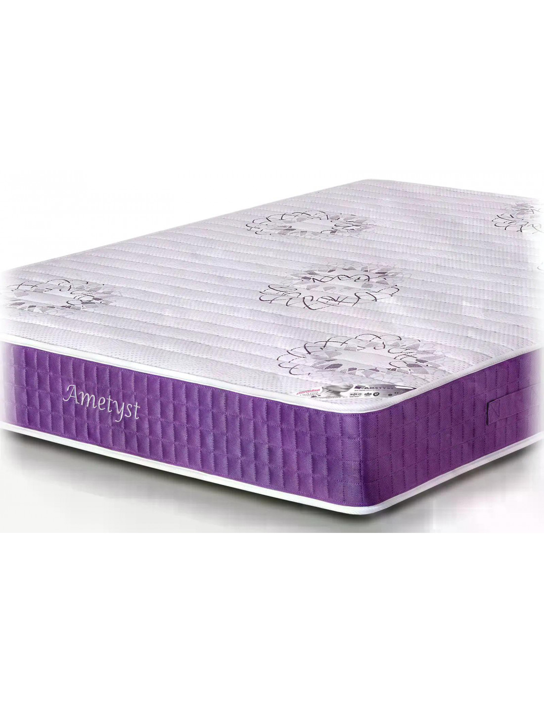 Модел Аметист съчетава неповторима визия и уникално усещане за комфорт. Съдържа седем зонов пружинен пакет Pocket System от индивидуално опаковани и независими една от друга пружини. Ядрото е със 7 зони на комфорт, подредени според специфичния натиск, който различните части на тялото упражняват върху повърхността на матрака. Това е една от най-добрите системи, съобразени с ергономията на човешкото тяло, която няма да загуби своите ортопедични качества в продължение на години. Аметист комбинира Memory пяна от едната страна на матрака, която се моделира според температурата на тялото, адаптира се към позицията му и помага за пълното му отпускане. Еластичната пяна от другата страна на матрака прецизно разпределя тежестта, като гарантира правилна позиция на гръбначния стълб. Избор на различно усещане за мекота и комфорт от двете страни на матрака.
