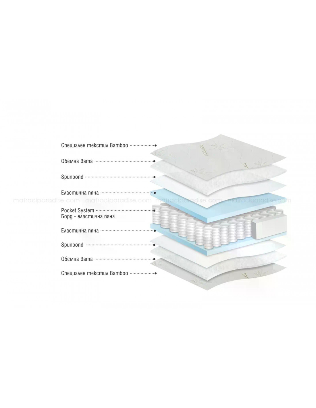 специален текстил Bamboo, ядро от пружинен пакет Pocket System, еластична пяна