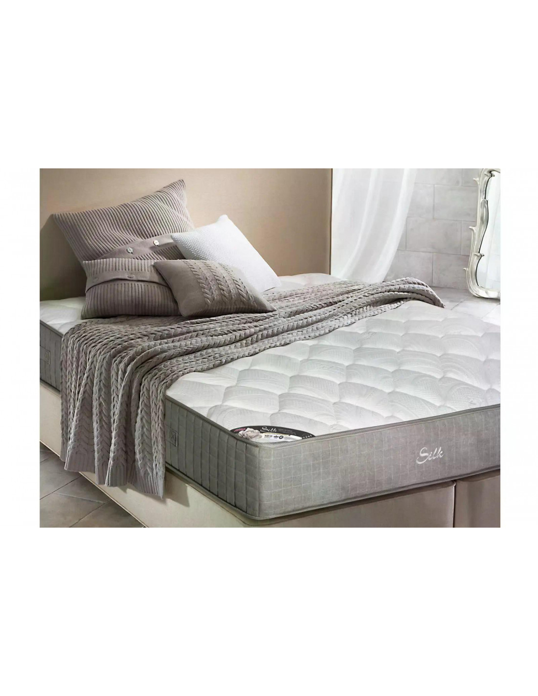 Модел Силк е луксозен матрак, отличаващ се с неповторима визия и уникално усещане за мекота и комфорт. Ядрото е зонов пружинен пакет Pocket System от индивидуално опаковани пружини със 7 зони на комфорт, подредени според специфичния натиск, който различните части на тялото упражняват върху повърхността на матрака. Всяка пружина е индивидуално опакована в текстилен джоб и поради независимото движение на всяка една от пружините, те потъват равномерно и се нагаждат според контурите на тялото. Правилното поемане на натиска осигурява равномерно разпределение на тежестта по цялата повърхност на матрака и поддържа гръбнака в естествено положение. Покет системата е с доказано най-дълъг живот и осигурява перфектни експлоатационни качества на матрака в продължение на години. Движението на пружините в сърцевината на матрака предоставя добра циркулация на въздуха и контролира влагата.
