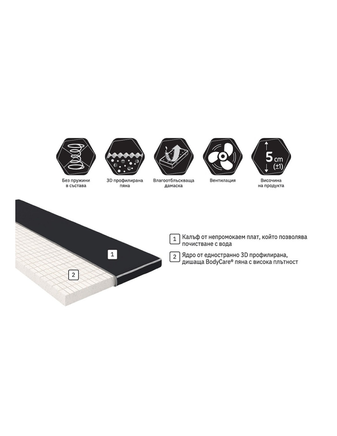 Memory пяна, профилирано ядро, специален текстилВисочина: 24 смСтепен на твърдост: СреденГаранция: 20 години